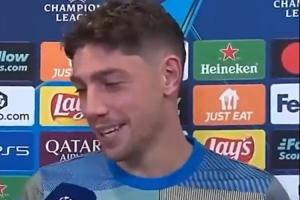 赛后发生了有趣的一幕,记者对巴尔韦德说道:我必须给你(展示)这个虚拟的东西,因为我没有金球奖在这,(向镜头展示手机屏幕金球奖图),这是你的。