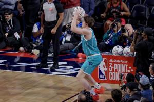 体育资讯2月15日讯 黄蜂新秀克尼佩尔今日参加三分球大赛,首轮拿到27分的情况下,他在第二轮仅拿到17分。