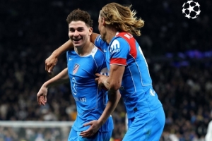 体育资讯3月19日讯 欧冠1/8决赛次回合比赛,阿尔瓦雷斯传射建功,马竞两回合总比分7-5淘汰热刺。