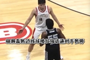 GIF-杨瀚森防边线球一直喷垃圾话 对手懵圈被喷暂停了