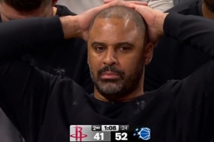 GIF-申京失误 贝恩追身三分球